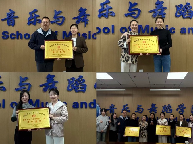 10月22日,蚌埠市文化馆在音乐与舞蹈学院举行非遗“名师带徒”项目工程培训基地授牌仪式,正式为学院授予 “花鼓灯”“五河民歌”“泗州戏”三个国家级非物质文化遗产项目培训基地牌匾。院长张永芳、蚌埠市文化馆馆长徐祭红、副馆长梁雷、骨干教师汤虹,佐志刚、声乐教研室主任王莹莹、博士教师郭婧雯、张潇潇、张楚楚等人出席仪式,共同见证这一非遗活态传承与高校教育融合的重要时刻。