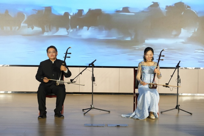 二胡合奏:《赛马》以鲜明的节奏和富有张力的技巧,模拟骏马奔腾的姿态,描绘了草原赛马的热烈场景,展现出蓬勃生机与豪迈气度。