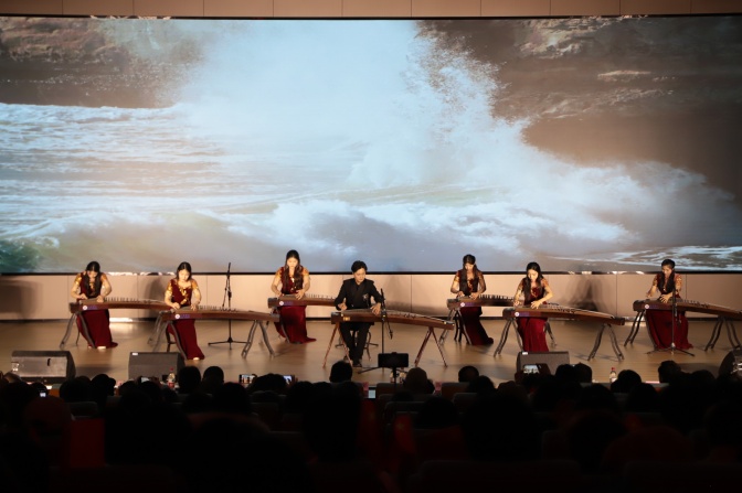 古筝合奏:《战台风》以紧凑有力的节奏和鲜明的音响对比,生动刻画了沿海人民在党领导下众志成城、抗击台风的壮阔场景,展现了不畏艰险、迎难而上的精神气质。