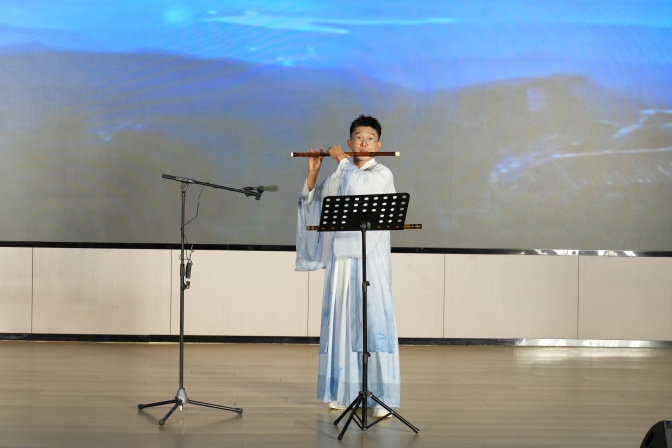竹笛独奏:《沂河欢歌》以明快流畅的旋律,描绘了沂河两岸秀美的自然风光和群众昂扬乐观的精神面貌,折射出社会主义现代化建设发展带来的崭新气象。