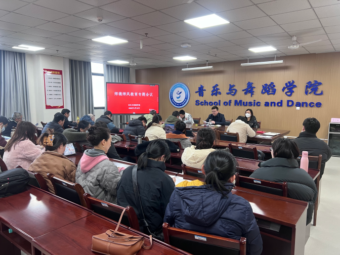 为切实加强教师队伍思想政治建设与师德师风建设,1月12日,音乐与舞蹈学院通过理论学习与座谈交流相结合的形式开展师德师风专题教育活动,推动师德师风建设走深走实。全体教职工参加活动,活动由党委书记吕部主持。